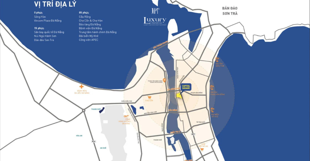 Capital Square Đà Nẵng là khu phức hợp đa chức năng sang trọng tọa lạc tại “ngã tư kim cương” Trần Hưng Đạo, Ngô Quyền và Nguyễn Công Trứ. Với 14 tòa tháp cao tầng (24–29 tầng) với hơn 3.391 căn hộ cao cấp và tiện ích đẳng cấp, dự án đô thị biểu tượng này đang định nghĩa lại cuộc sống hiện đại ven sông tại Đà Nẵng.