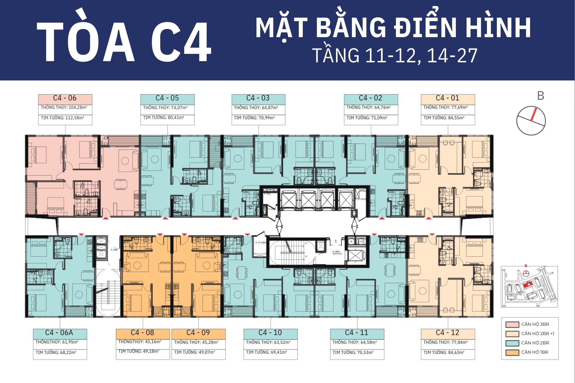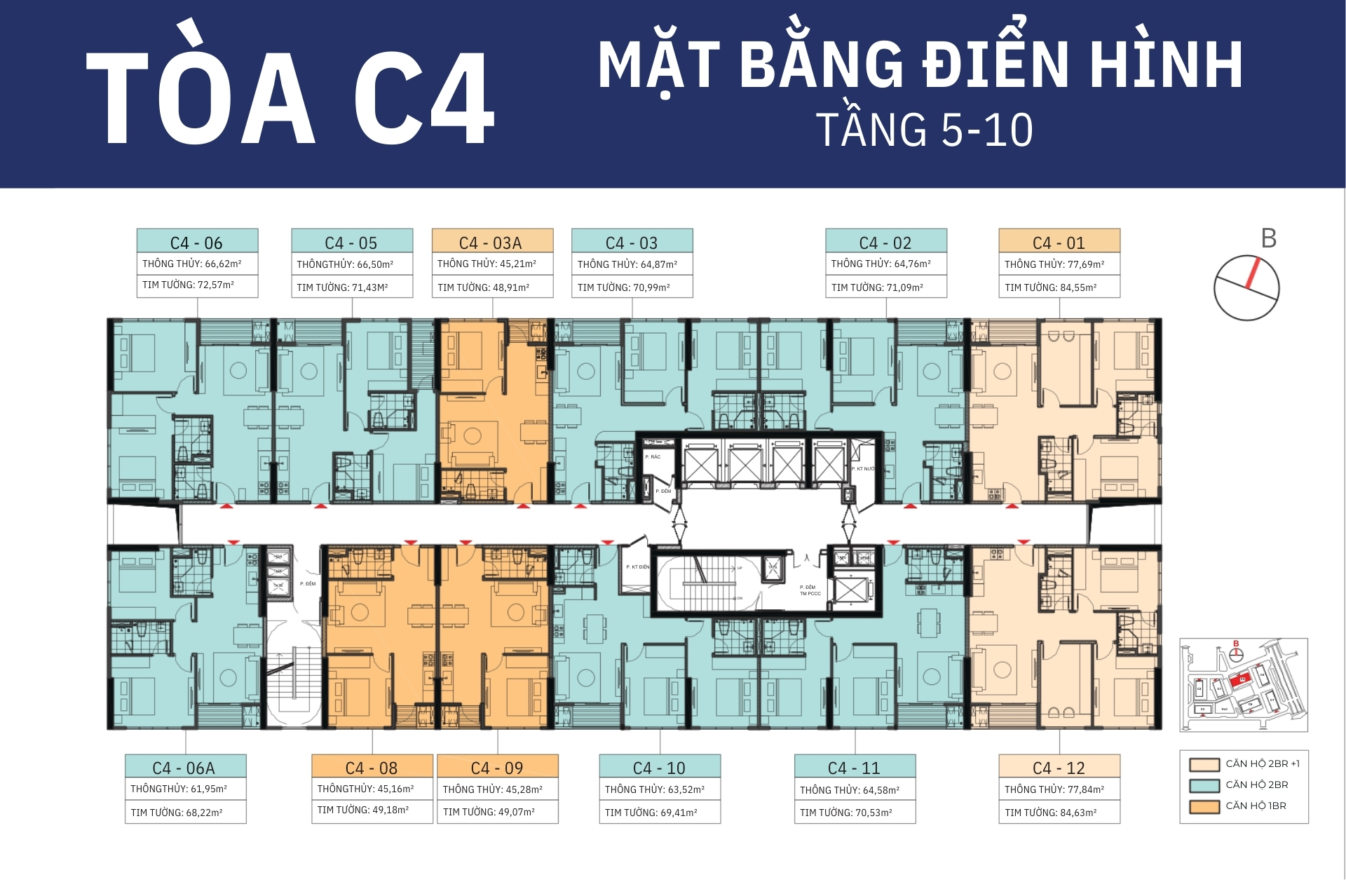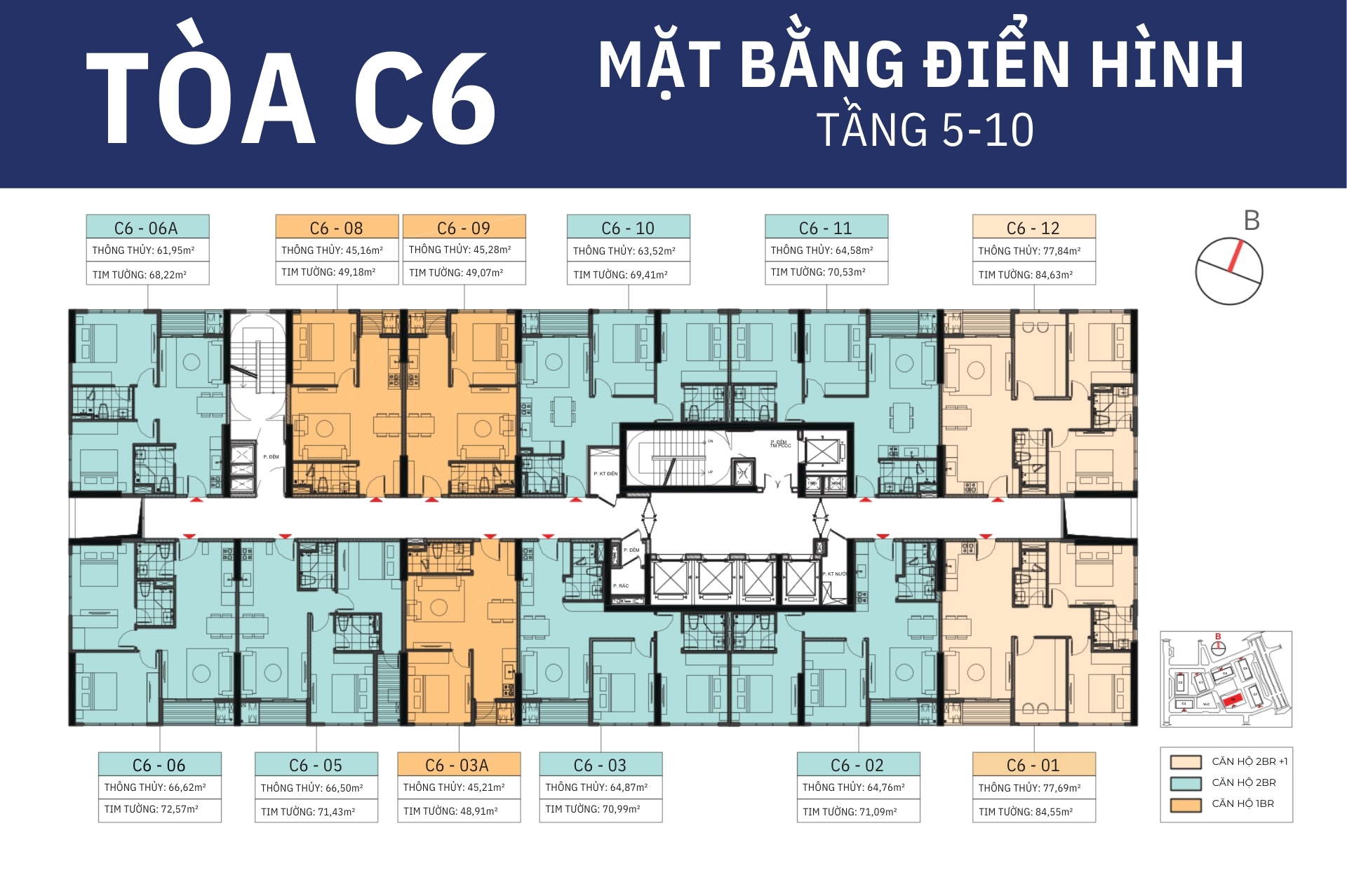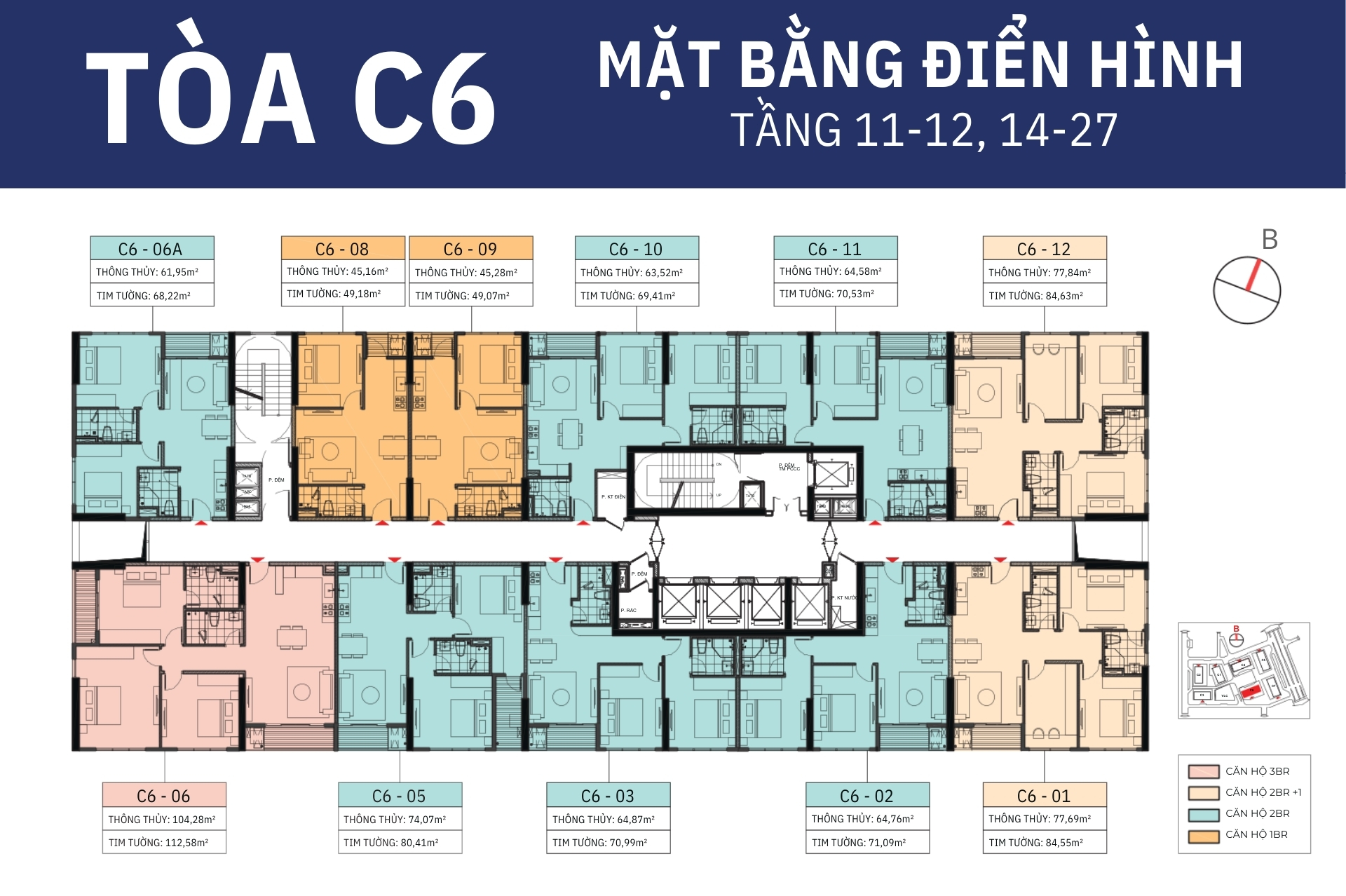 2PN: ~63–93 m² (có loại duplex lên tới ~259,5 m²)